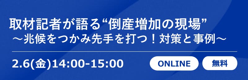 本セミナーでは様々な倒産の現場を見てきた現役倒産取材記者が、2025年の倒産傾向や2026年の見通しを解説、併せてリスク回避のためのデータ活用をご紹介します。100年以上の長い間に培ってきた帝国データバンクのノウハウを皆さまの与信管理業務にお役立てください。