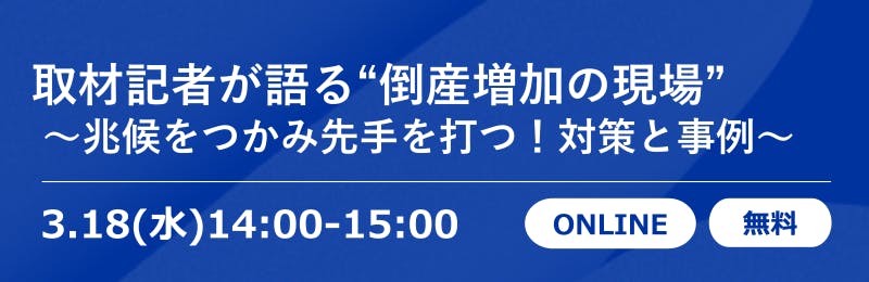 本セミナーでは様々な倒産の現場を見てきた現役倒産取材記者が、2025年の倒産傾向や2026年の見通しを解説、併せてリスク回避のためのデータ活用をご紹介します。100年以上の長い間に培ってきた帝国データバンクのノウハウを皆さまの与信管理業務にお役立てください。