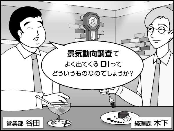 「そういえば、いまさらこういうことを聞くのもなんですが、景気動向調査でよく出てくるDIって、どういうものなのでしょうか?いつもグラフを見て感覚的な善し悪しだけを見ていましたが・・・」
