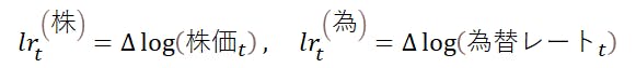 • 株価および為替:レベルではなく対数リターン(以下、Δlog)を使用