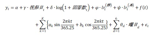 というシンプルな近似を採用している。この定数パスに対して log(1+・) を施し、将来の log(1+回答数) としてUCMに渡すかたちである。もちろん、実運用では「月初は回答が厚くなりやすい」「特定の曜日に偏る」といった知見を加味して、将来の回答数を曜日別平均で置き換える、あるいは別の補助モデルで予測した値を使うといった高度化も可能である。重要なのは、回答数が将来予測において「測定精度」の役割も担っている点であり、無造作に小さい値を与えると、モデル全体の不確実性を過小評価したり、逆に過大評価したりするリスクがある、ということである。