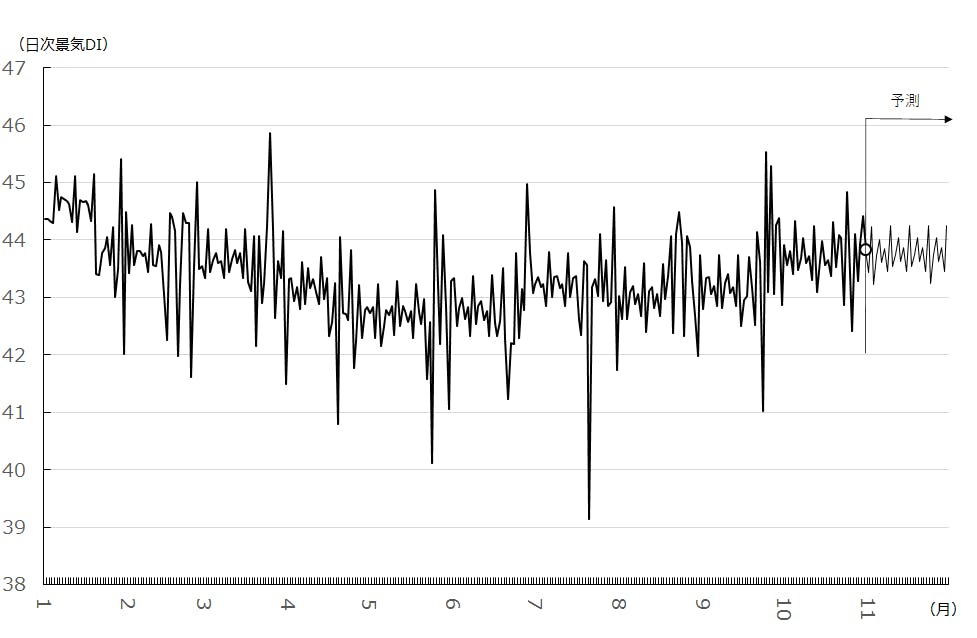 【図1 2025年の日次景気DIの推移と30日間予測】