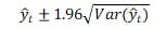 UCMでは、将来時点 T+h の予測分散 νT+h は、状態の不確実性と外生の効果を織り込んだ形で計算される。予測区間は