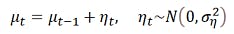 を採用する。状態方程式は潜在レベルをランダムウォークで表し、