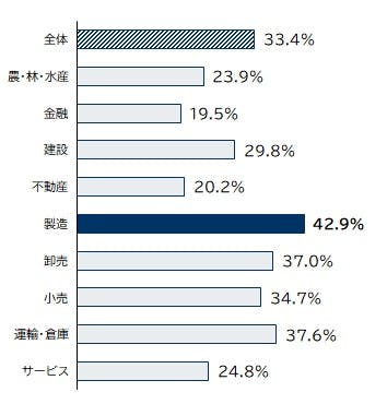 『減益を見込む』企業を業界別にみると、『製造』が42.9%と唯一4割を超えた。なかでも特に、自動車に関連する「輸送用機械・器具製造」は55.2%と、過半数の企業が減益を想定していた。以下、『運輸・倉庫』が37.6%、『卸売』が37.0%で続いた。他方、『金融』(19.5%)は2割を下回り、業界間で濃淡が表れた。