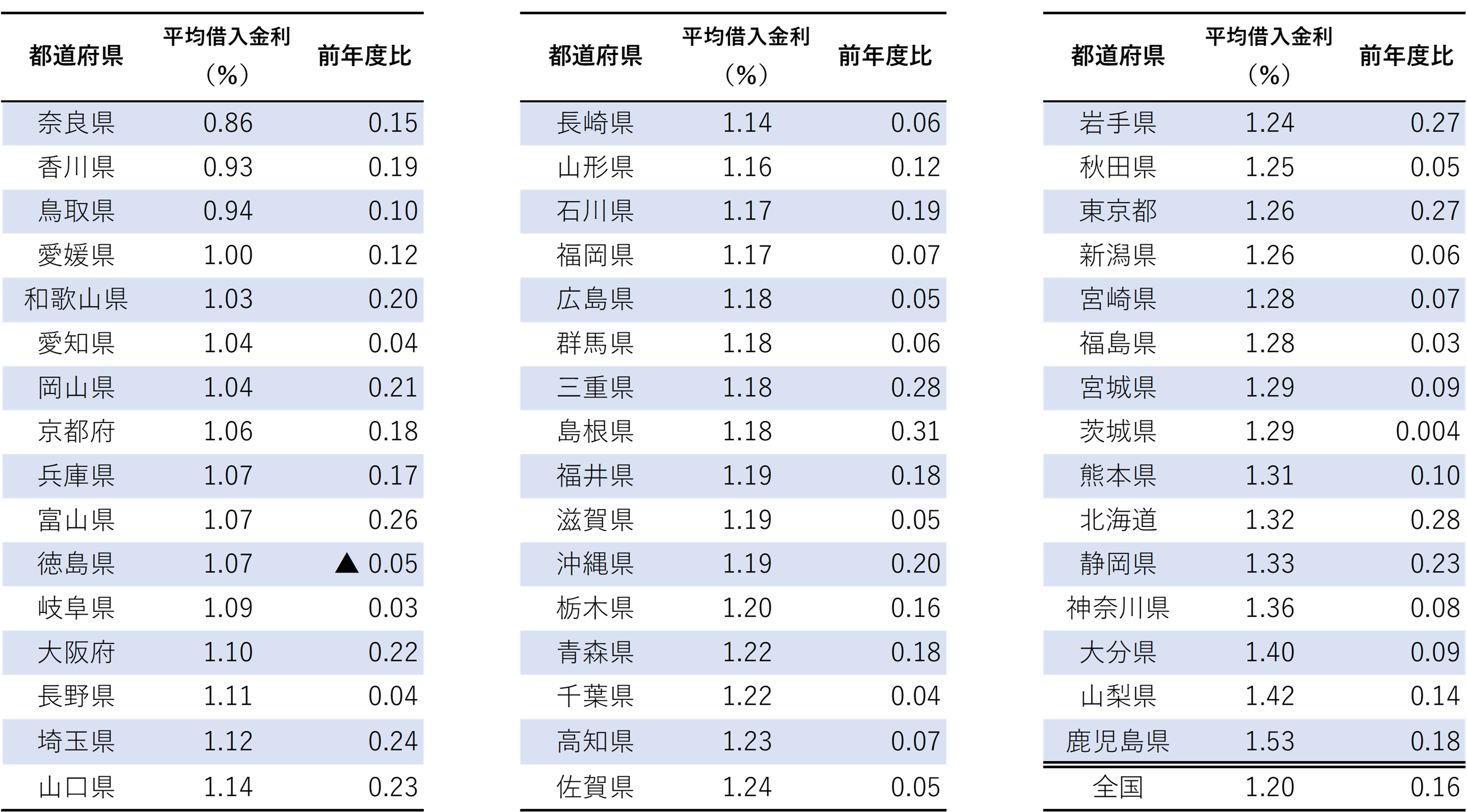 (参考) 都道府県別の平均借入金利(2024年度、低金利準)