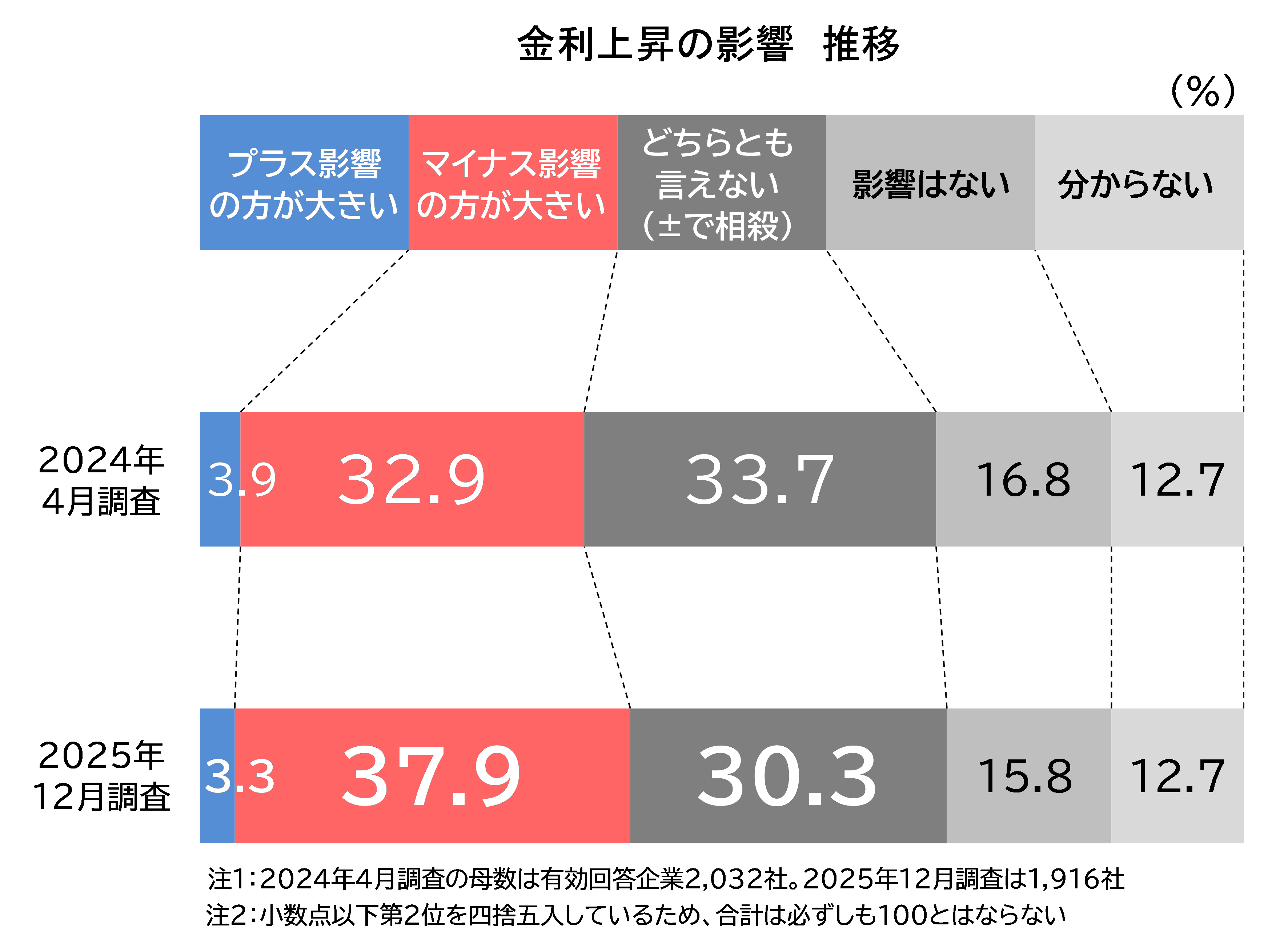 金利上昇の影響、企業の37.9%が「マイナスの方が大きい」