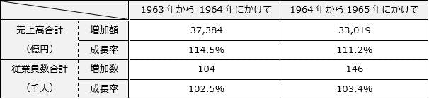 1964年の東京オリンピック前後について調べてみると、1963年から1964年にかけて、総売上高が約3.7兆円も増加し、約10.4万人の新規雇用が生まれていました。また、1964年から1965年にかけては、総売上高が約3.3兆円も増加し、約14.6万人の新規雇用が生まれていることがわかりました。