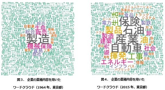 帝国データバンク史料館が保管している『帝国データバンク企業年鑑』を、東京工業大学帝国データバンク先端データ解析共同研究講座の協力を得てデジタル化し、1964年と2015年の東京都に立地する企業を比較・分析してみました。