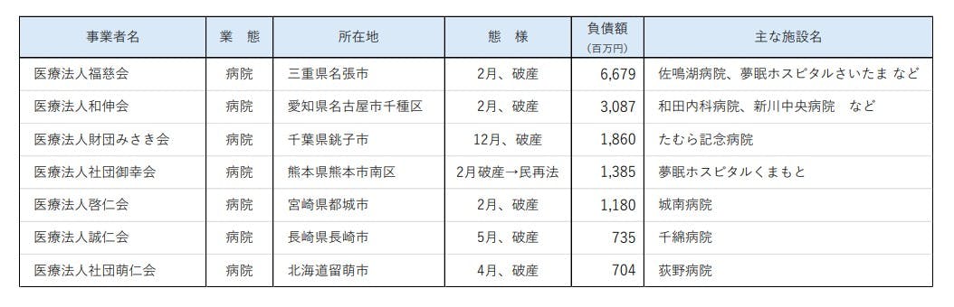 負債額最大は「佐鳴湖病院」など運営の福慈会(三重)