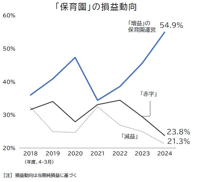 2026年は、保育士の配置基準や処遇の改善など政策面で「量」重視から「質」重視へのシフトが鮮明で、経営改善やサービスの質確保に意欲的な保育園にとっては強い追い風となる。他方で、保育施設の余剰感が強まる地域を中心に、不採算園などの淘汰も同時に進むと予想され、保育サービス業界全体で調整局面が本格化する1年になるとみられる。